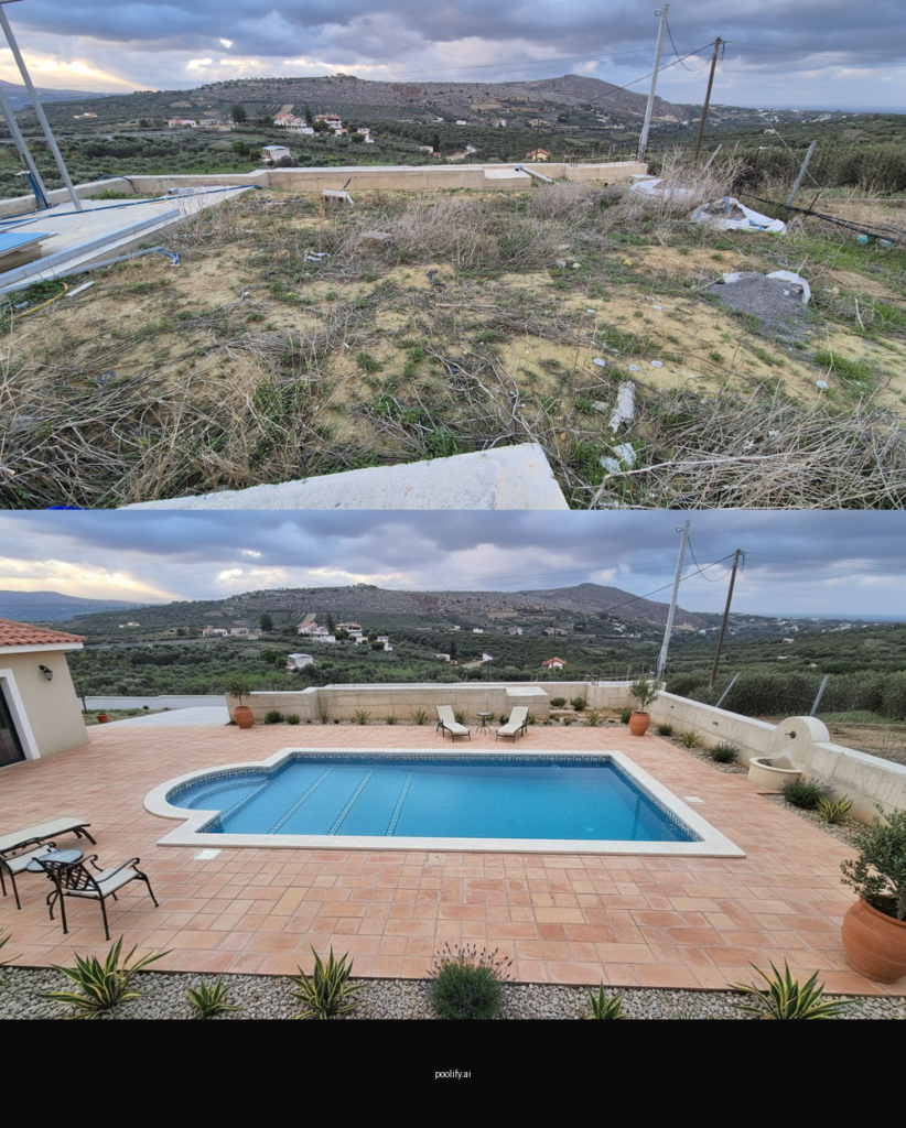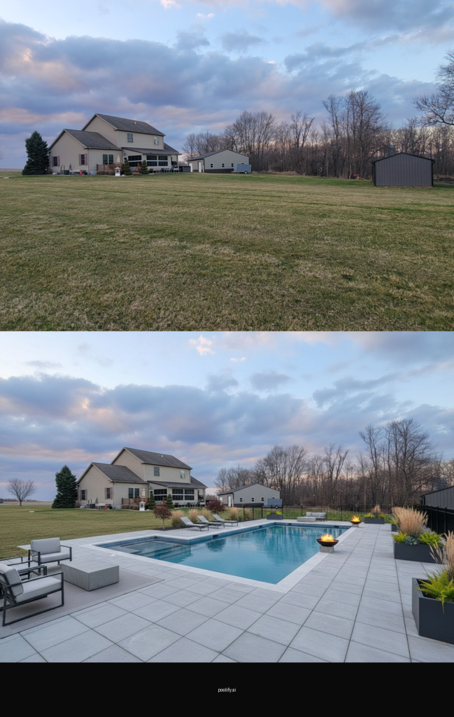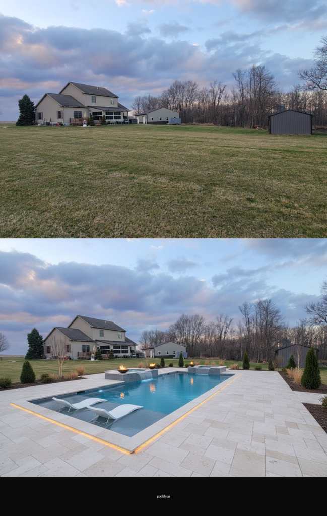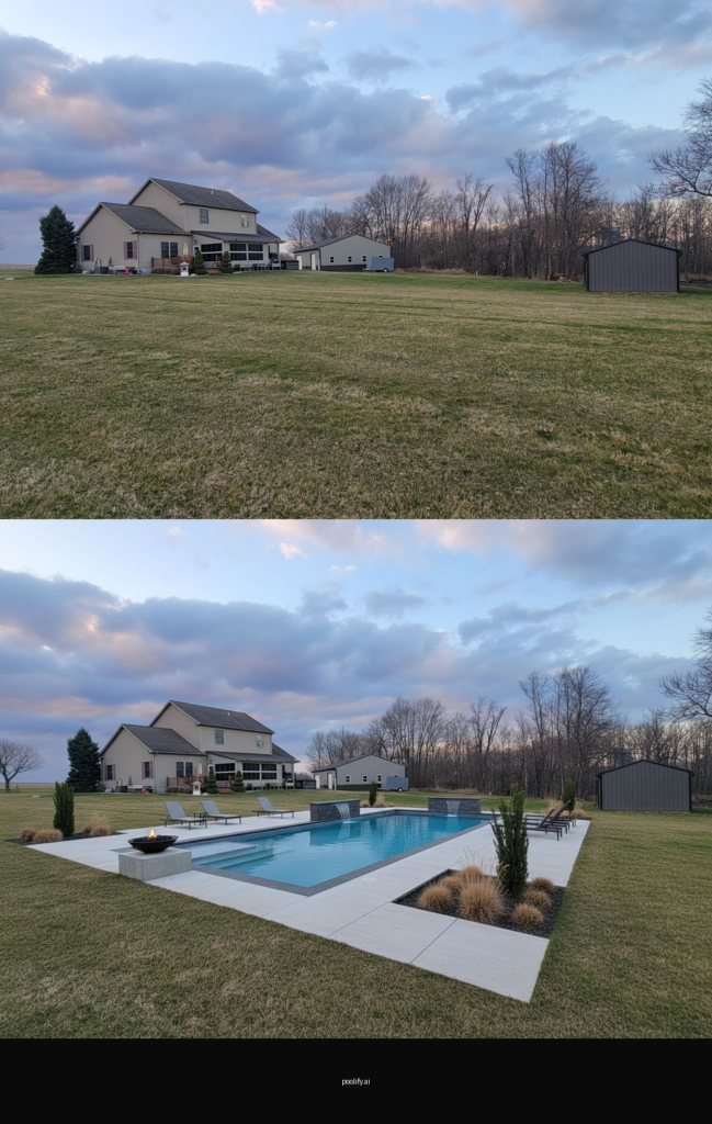 Swimming Pool Idea in your area This before-and-after shows a pool design concept generated from a real backyard photo. If