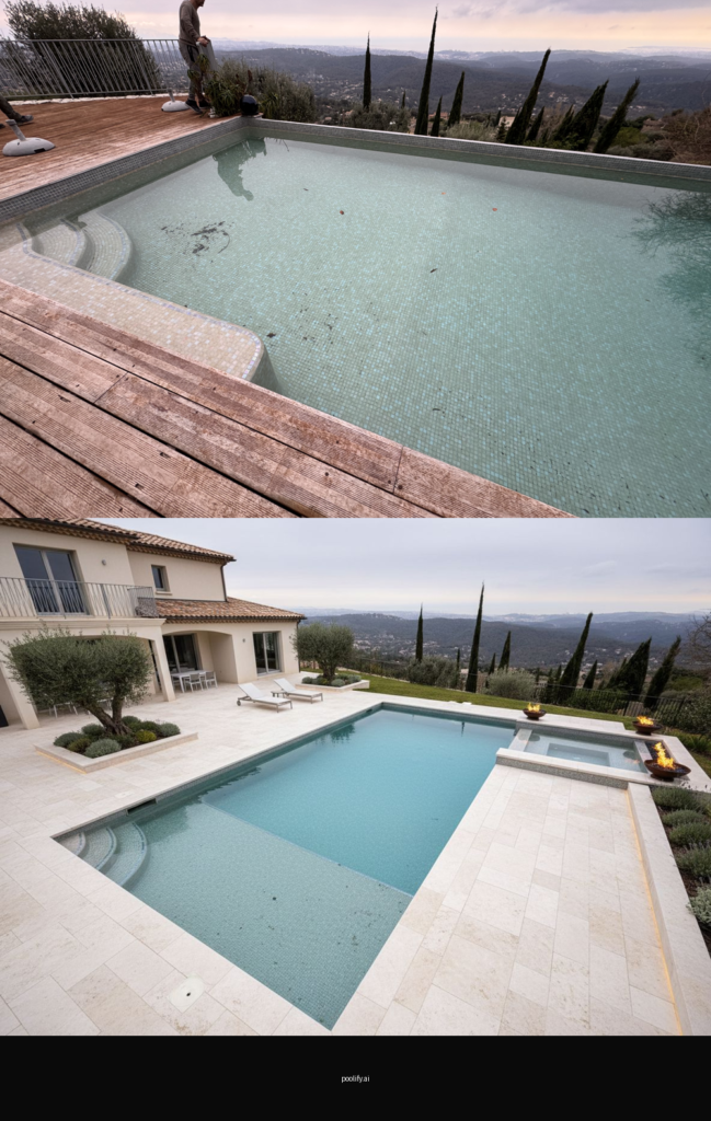 Many of the transformations featured here are generated using AI-powered pool design tools that apply new pool concepts directly to real backyard photos. These visual examples demonstrate how digital designs can be used to explore multiple options before construction begins, reducing uncertainty and improving decision-making.